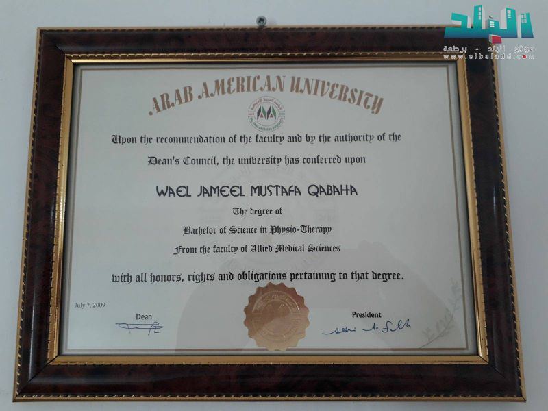 بكالوريوس علاج طبيعي الجامعة العربية الأمريكية.