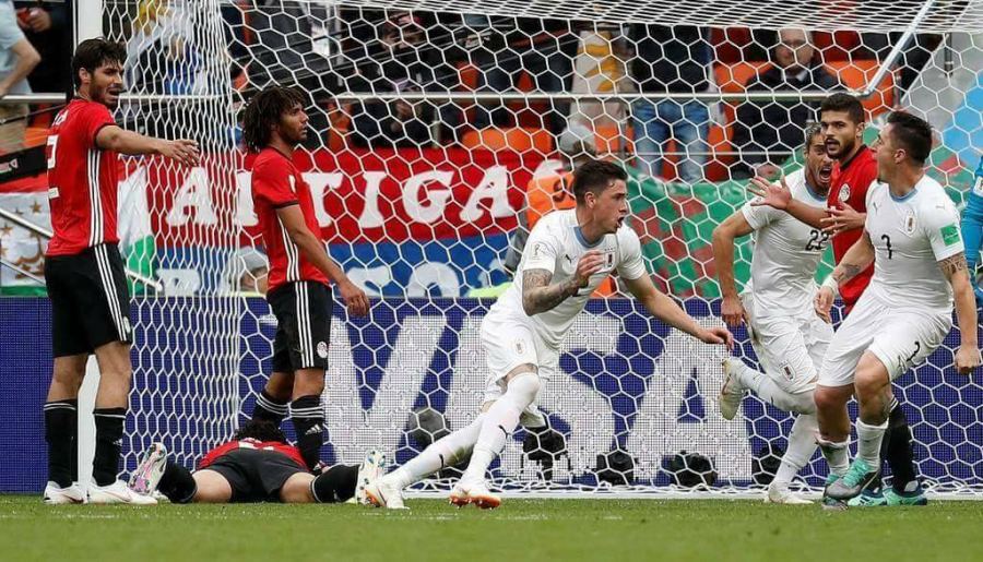 فاز منتخب الاوروغواي على المنتخب المصري بهدف دون رد،تم تسجيله في الدقيقة الـ 90، ضمن بطولة كأس العالم 2018 المقامة في روسيا.