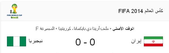 تعادل ايران ونيجيريا 0 - 0 شاهد التفاصيل بالارقام