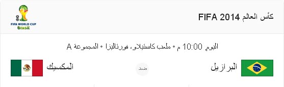 مونديال البرازيل ... مباريات اليوم 17-6-2-2014مونديال البرازيل ... مباريات اليوم 17-6-2-1المباراة الاولى : الجزائر - بلجيكا لقاءات سابقة بين الفريقينالمباراة الثانية : البرازيل - المكسيك لقاءات سابقة بين الفريقين 17/06/2014 05:39