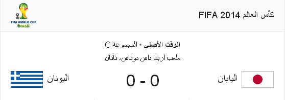 نتيجة مباراة اليونان ضد اليابان 20/6/2014 ...