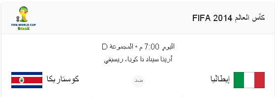 المباراة الاولى : ايطاليا ضد كوستاريكا