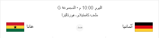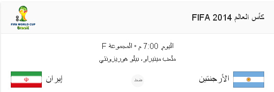 مباريات اليوم 21/6/2014المباراة الاولى : الارجنتين ضد ايران المباراة الثانية : المانيا ضد غانا 21/06/2014 17:04