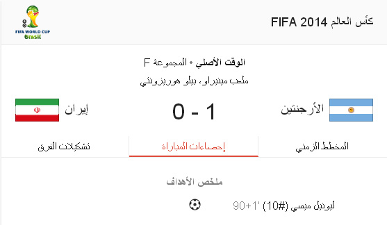 هدف مباراة الارجنتين ضد ايران 21/6/2014وتصعد الارجنتين رسميا الى دور ال16 وننتظر المباراة الثانية اليوم بين نيجيريا والبوسنة النتيجة والملخص : فيديو هدف المباراة الوحيد :[size=85] 21/06/2014 21:12