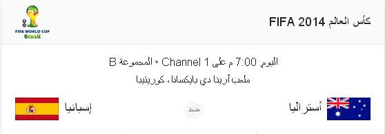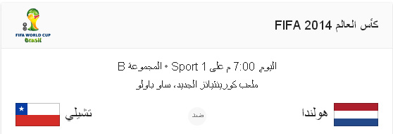 مباريات اليوم 23/6/2014المباراة الاولى : استراليا ضد اسباتياالمباراة الثانية : هولندا ضد تشيليالمباراة الثالثة : الكاميرون ضد البرازيلالمباراة الرابعة : كرواتا ضد المكسيك 23/06/2014 17:13