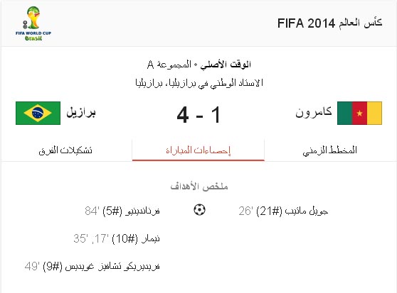 اهداف مباراة البرازيل والكاميرون 23/6/2014