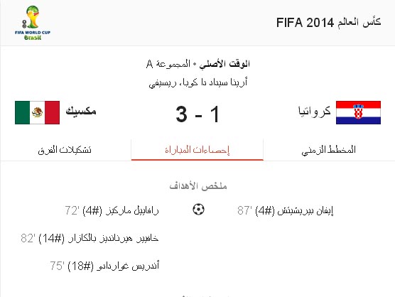 اهداف مباراة كرواتيا ضد المكسيك 23/6/2014