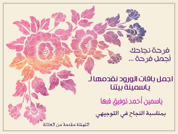 تهنئة بالنجاحتهنئة مقدمة من العائلة الى الطالبة ياسمين احمد توفيق قبها بمناسبة نجاحها في التوجيهي. 14/07/2020 08:43 6,803