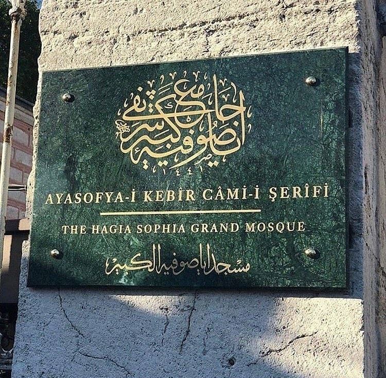 باللغة التركية: AYASOFYA-İ KEBİR CAMİ-İ ŞERİFİ.