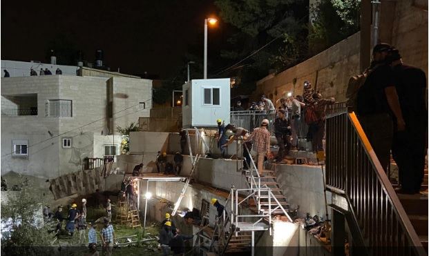 وقام المستوطنون،بحماية عدد كبير من رجال الشرطة، بوضع غرفتين سكنيتين داخل قطعة الأرض، إضافة إلى درج جاهز، كما وضعوا كاميرات مراقبة على البنايات السكنية، وفتحوا مدخلا جديدا لأحد البنايات.