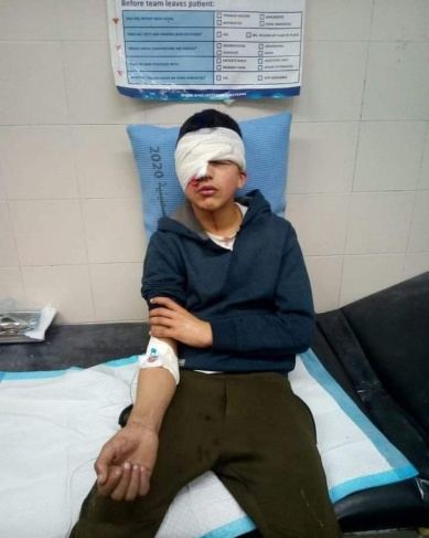 أدت رصاصة معدنية مغلفة بالمطاط،اطلقها جنود الاحتلال،الى التسبب بفقد الطفل عز الدين البطش من الخليل البالغ من العمر 13 بصره بعينه اليمنى .