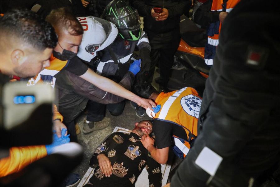 اصيب مساء الخميس عدد لا يقل عن 100 من الشبان الفلسطينيين اثر الموجهات التي وقعت بين المقدسيين الاحتلال الاسرائيلي عند باب العامود بالقدس.