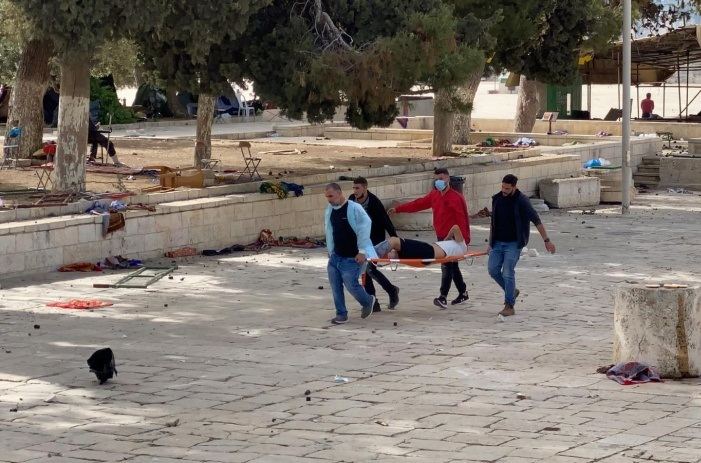 ومنعت قوات الاحتلال سيارات الاسعاف من الدخول الى الاقصى، ويقوم المتطوعون والمسعفون بنقل المصابين من العيادات لإخراجها ونقلها الى المستشفى.