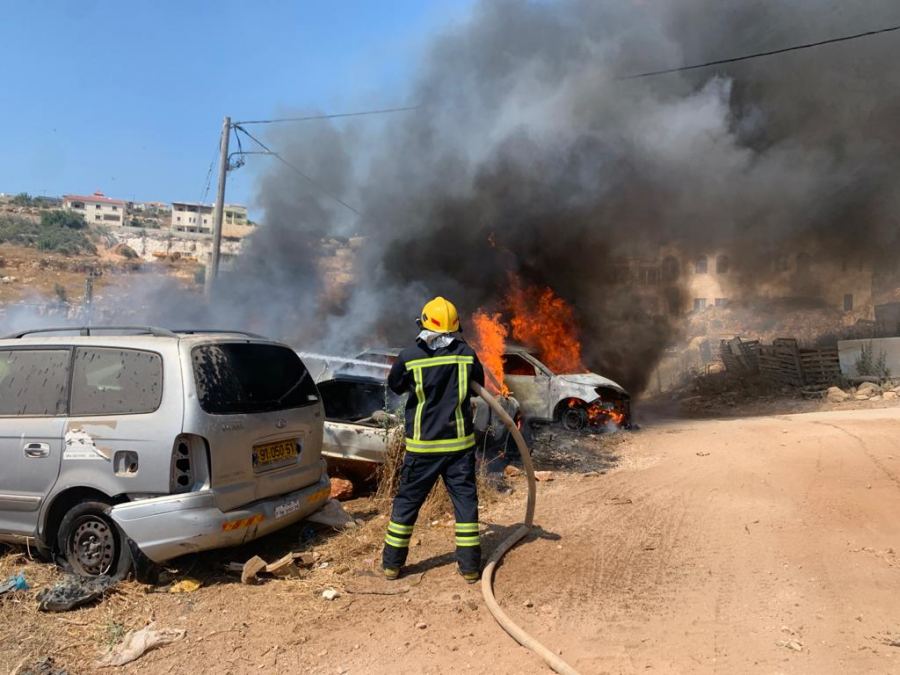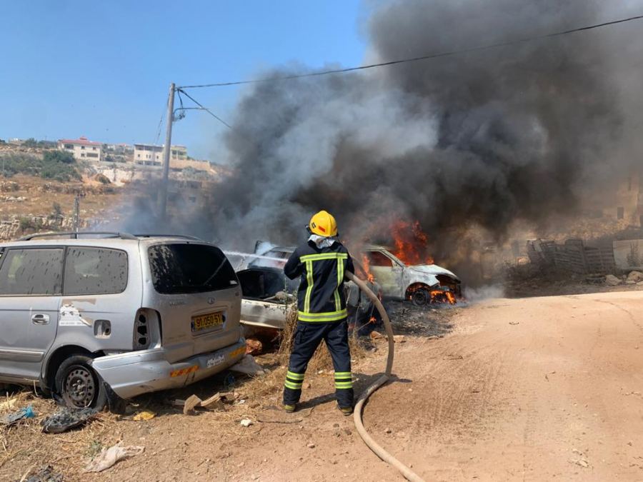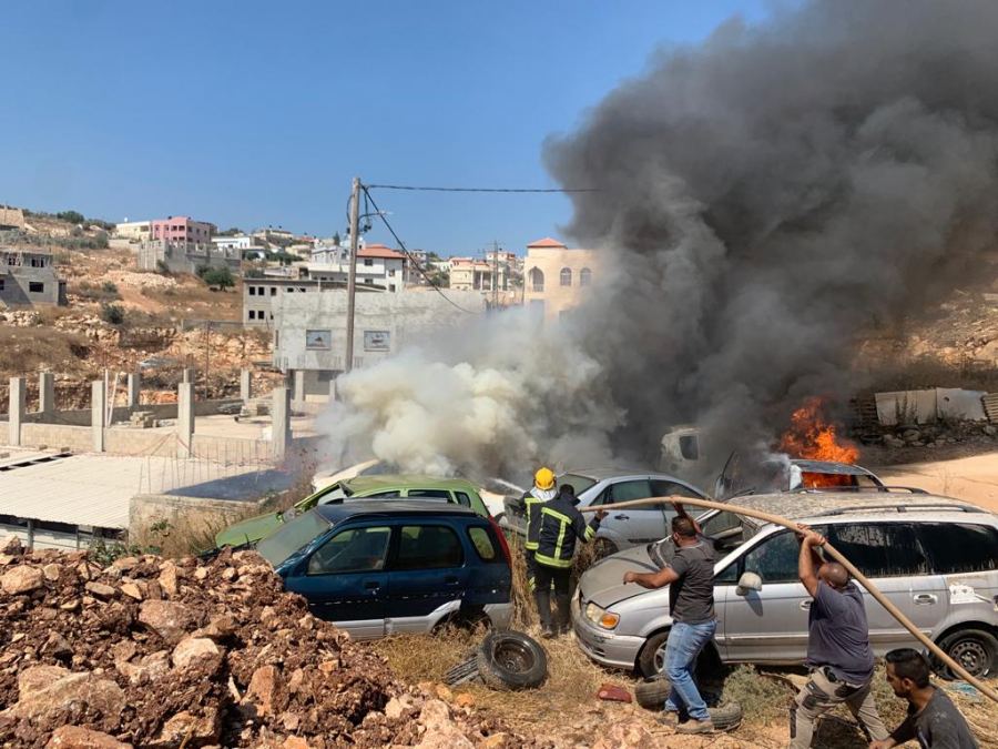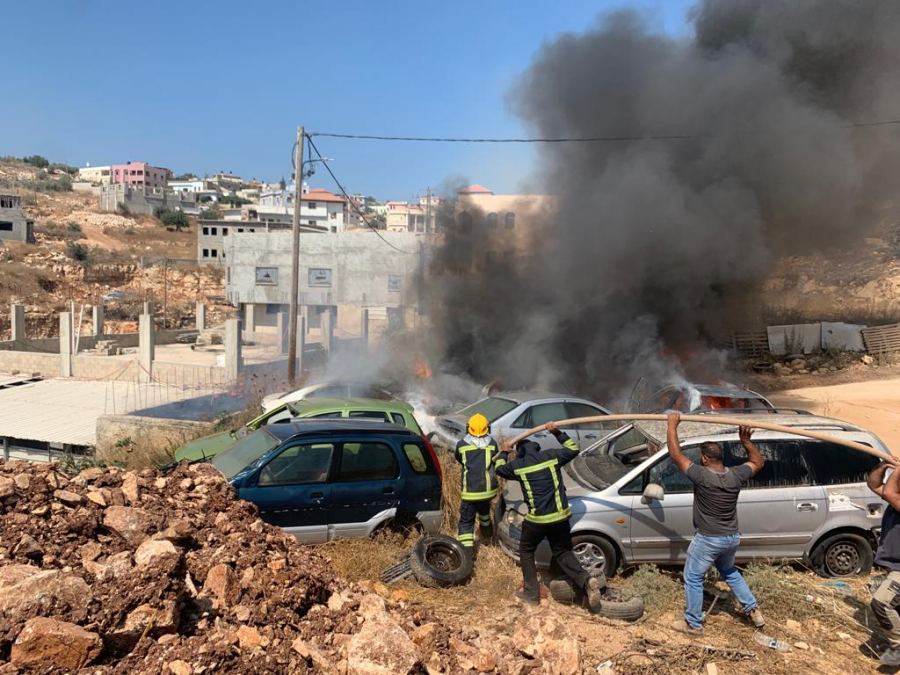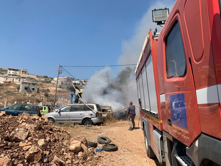 توجه طاقم الدفاع المدني - مركز برطعة الى الموقع وعمل على اخماد الحريق والحد من انتشاره الى باقي المركبات والمناطق المجاورة .