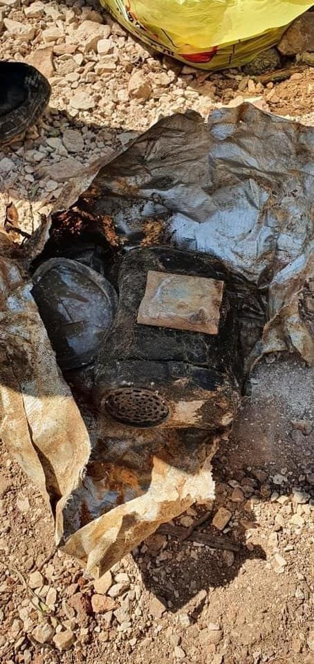 كما عثر بجانبه على متعلقاته الشخصية وذخيرة وخوذة.