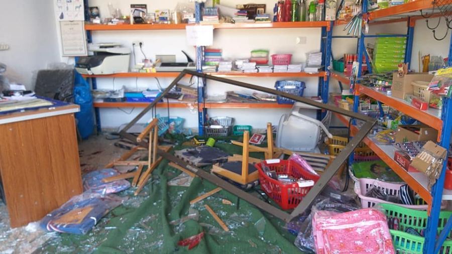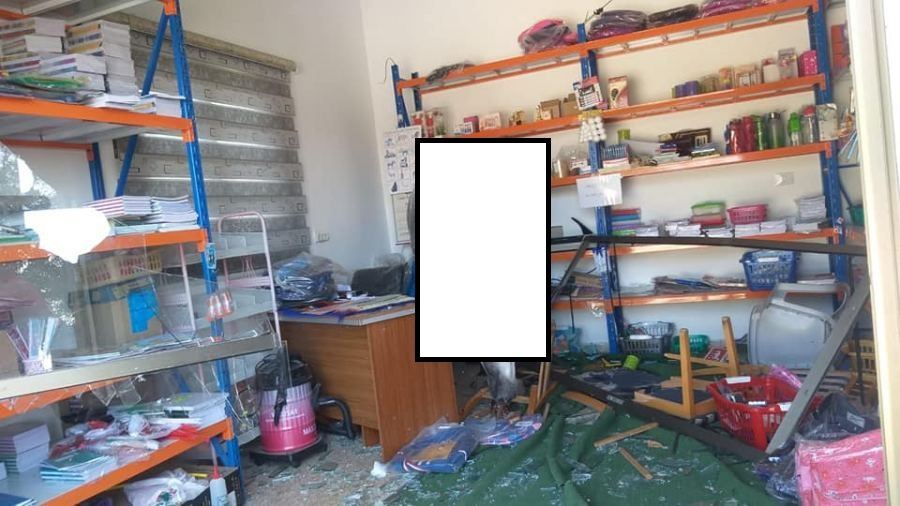 وبحسب صاحب المكتبة،اسامة خطيب،انها كانت مغلقة بباب زجاجي حيث دمر الحصان الهائج الباب الزجاجي ودخل المكتبة ودمر محتوياتها،وبلطف من الله لم يكن احد بداخلها.