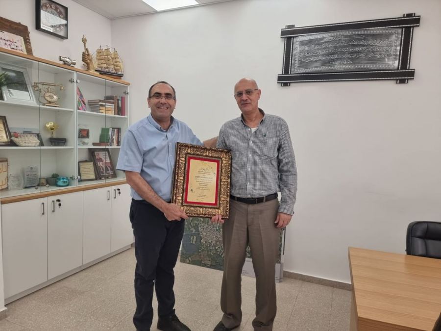 قام رئيس مجلس بسمة المحلي المربي رائد كبها يوم الأربعاء الفائت، بتكريم السيد مصطفى غليون رئيس لجنة الزكاة والصدقات في أم الفحم بمكتبه ببناية المجلس المحلي على مساعيه وجهوده في المشاريع الخيرية التي تقدمها لجنة الزكاة والصدقات للأهل في قرى "بسمة".