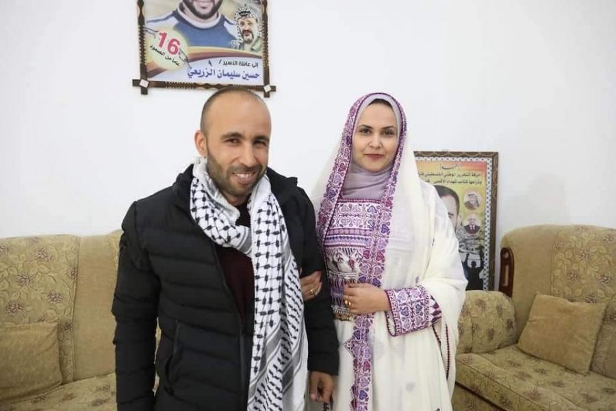 يلتقي خطيبته بعد 19 عاماًبعد اعتقال دام 19 عاما ....الأسير المحرر قبل يومين حسن الزريعي يجتمع بخطيبته أمينة لأول مرة في قطاع غزة. 22/12/2021 11:53