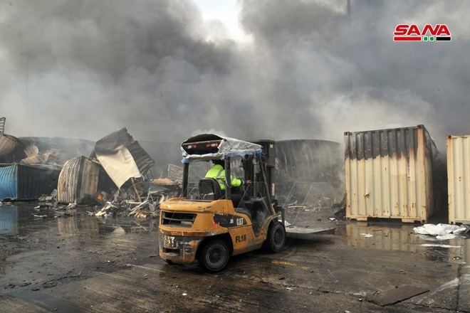 وأكدت السلطات السورية أن فرق الإطفاء تمكنت من السيطرة على الحرائق الهائلة التي اندلعت جراء الاستهداف.