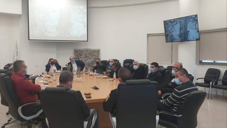 حيث تم مناقشة القضايا المتعلقة بأحداث العنف التي تجتاح المجتمع العربي، حيث عرض رئيس المجلس المحلي ومدراء الأقسام الجهود التي يبذلها المجلس المحلي من مشاريع ونشاطات توعوية وتربوية وتثقيفية كخطوات وقائية للابتعاد عن أزمة العنف وتبعاتها.