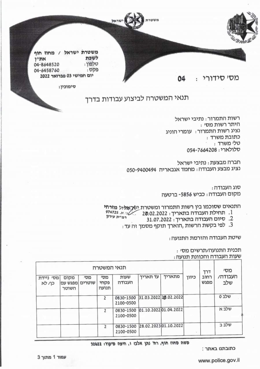 لذا وبناء على ذلك نعلمكم بأن شركة نتيفي يسرائيل - נתיבי ישראל – ستباشر العمل بالشارع ابتداء من يوم الاثنين القريب الموافق 21.02.22، هذا وتمتد المرحلة الأولى من العمل بالشارع حتى نهاية شهر آذار. أيام الأحد حتى الخميس من كلّ أسبوع في الساعات 08:30 – 15:00 .