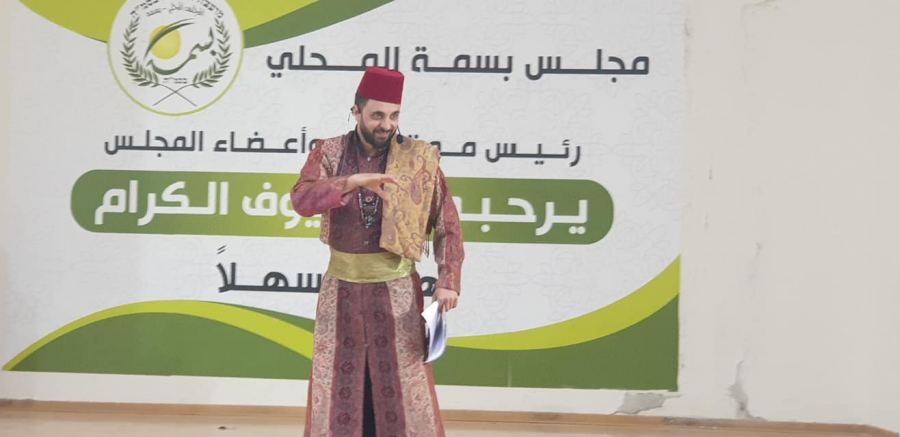 بعد ذلك كان الحضور على موعد مع فقرة ثقافية فنية وسرد قصصي تفاعلي لحكايات أمثال شعبية مع الحكواتي الفلسطيني محمد الحاج.