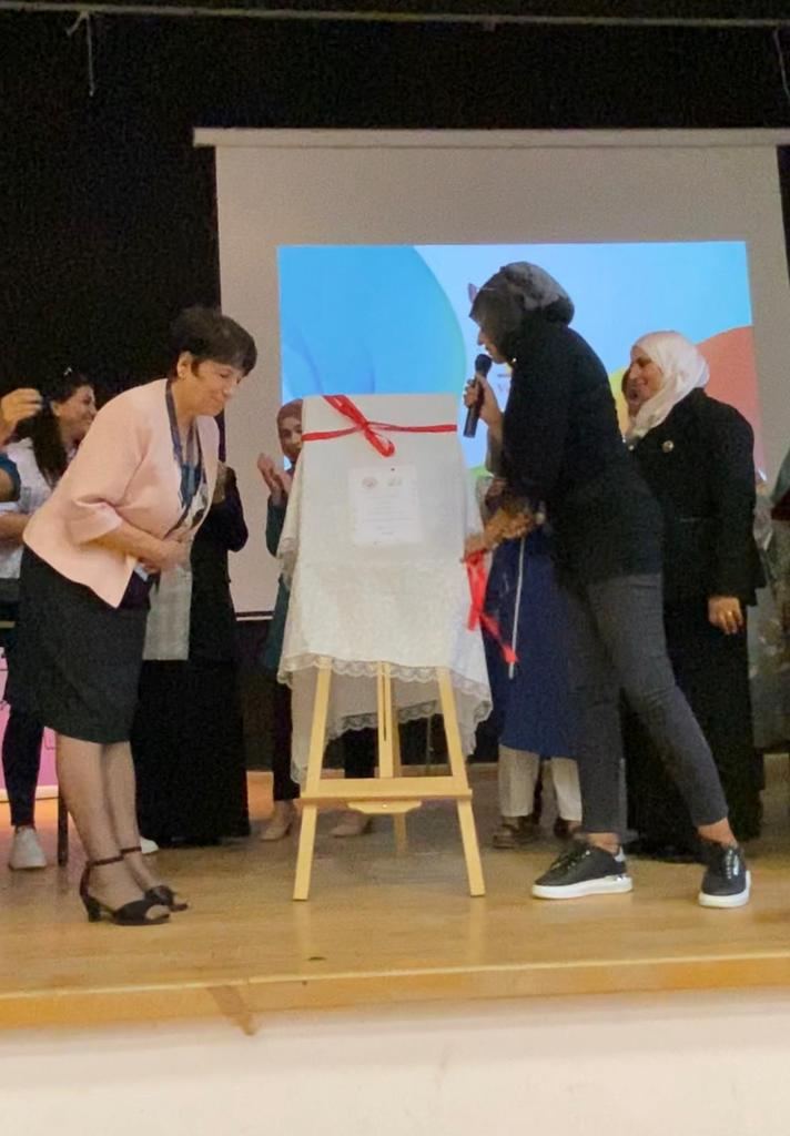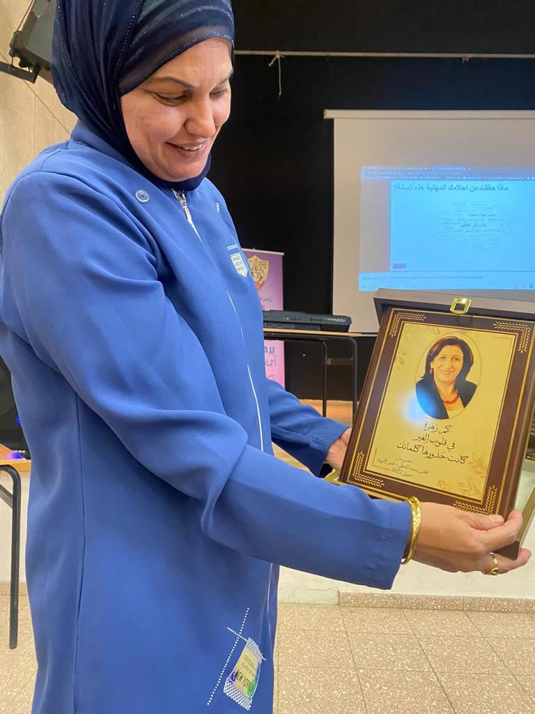 وفي نهاية الحفل كرمت نجوى كبها ،رئيسة جمعية نجم، المفتشة سناء عبد الخالق بلوحه فنية تعبيراً عن شكرها ومحبتها لها باسم مربيات ومجلس "بسمه "