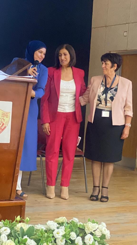 وفي الحفل كرمت السيده فله محاميد نيابة عن مجلس "بسمه" باسم رئيس المجلس الاستاذ رائد كبها ومدير قسم المعارف ومربيات "بسمه" بدرع شكر وتقدير للسيده فاطمه ابو احمد.