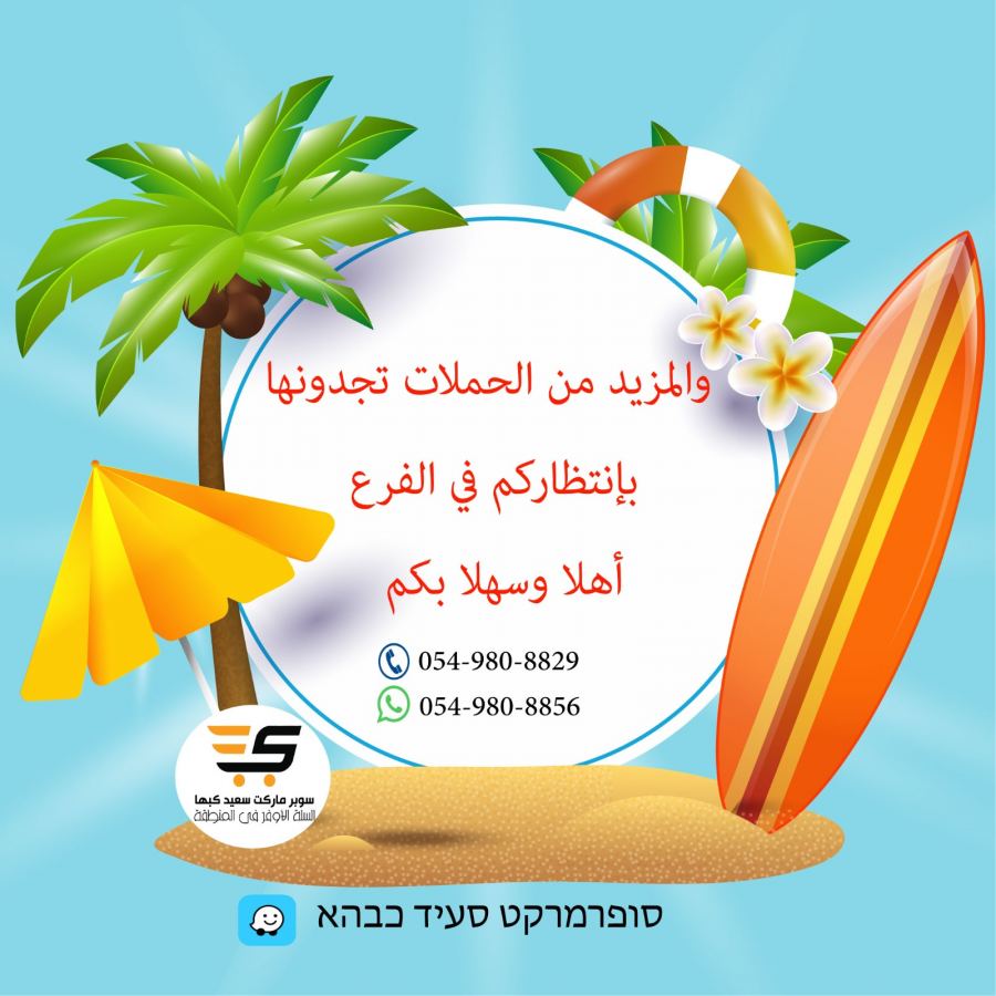 حملة " صيّف وكيّف " في سوبر ماركت سعيد كبها حملة " صيّف وكيّف " في سوبر ماركت سعيد كبها ...السلة الاوفر في المنطقة برطعة - مقابل المدرسة الابتدائية 16/07/2022 13:01