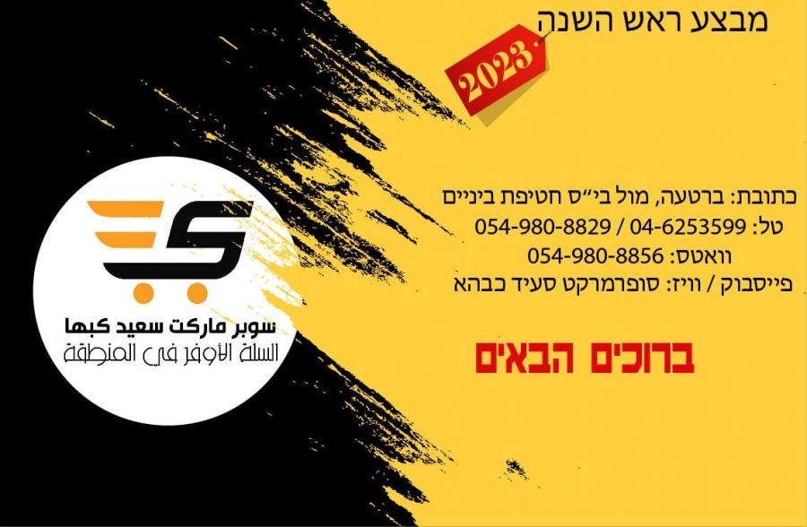 سوبر ماركت سعيد كبها ... حملة تنزيلات بمناسبة السنة الجديدةسوبر ماركت سعيد كبها ... حملة تنزيلات بمناسبة السنة الجديدة 30/12/2022 09:51