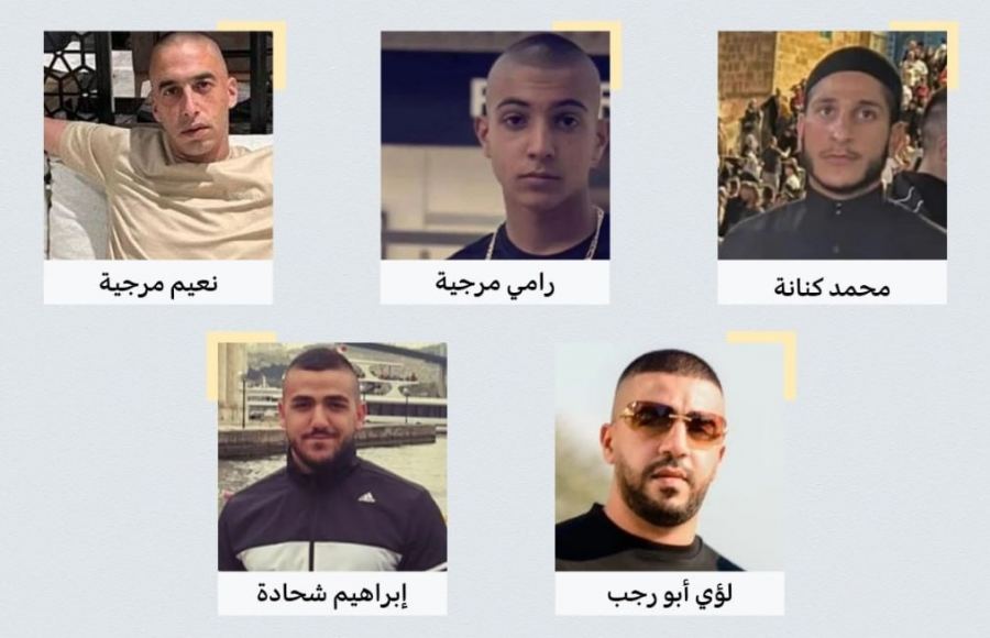 والضحايا هم: رامي مرجية ولؤي أبو رجب ونعيم مرجية وإبراهيم شحادة ومحمد كنانة.