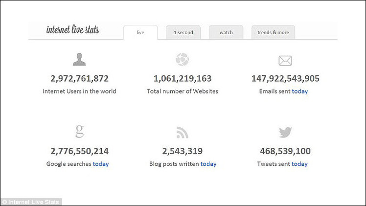 ويستمر هذا العدد في الارتفاع، كما يمكن مشاهدة الأرقام الفعلية على متتبع الإنترنت Internet Live Stats ILS، وهو الموقع المتخصص في شؤون الانترنت.