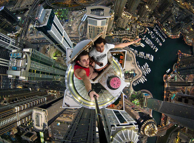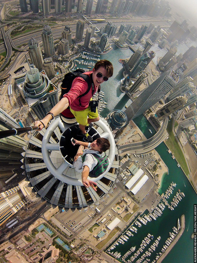 أبراج دبي الشاهقة أصبحت الهدف التالي لمجموعة "المجانين الروس" كما يطلقون على أنفسهم. فقد نشرت المجموعة المغامرة مجموعة صور ومقطع فيديو تم تصويرها من قمم أشهر ناطحات السحاب في مدينة دبي. ويقول ألكساندر ريمنيف هو واحد من الشباب المغامرين أن معظم شرفات الأبراج في دبي مفتوحة ويمكن الوصول إليها بسهولة. ورغم خطورة ما يقوم به "المجانين الروس" وعدم استعانتهم بأدنى وسائل الأمان، إلا أن الصور الملتقطة أبهرت المتابعين ونشرت في كثير من المواقع الإلكترونية العالمية.