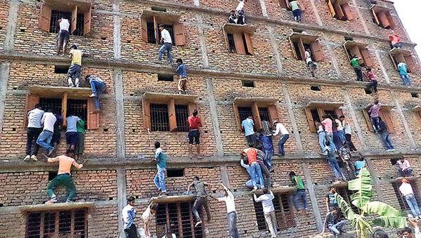 ونشرت صحيفة هندوستان تايمز صورة لعشرات الرجال يتسلقون جدار مركز للامتحانات من أربعة طوابق في ولاية بيهار، بينما جلس البعض على حواف النوافذ وصنعوا من أوراق بها إجابات أسئلة الامتحان طائرات ورقية ألقوها داخل الفصول التي تجرى بها الامتحانات.