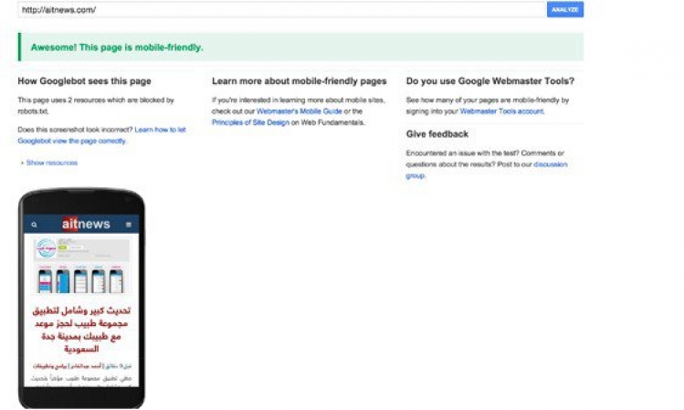 ويمكن لأصحاب ومدراء المواقع التحقق من أن مواقعهم معدة بشكل جيد للتصفح عبر أجهزة الموبايل من هنا.