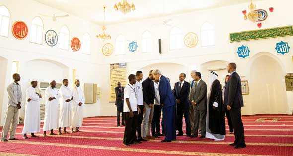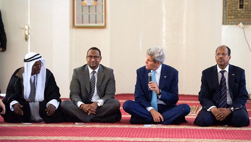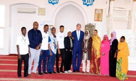 التقارير الإعلامية أشارت إلى أن كيري وفور وصوله لجيبوتي قام بزيارة مسجد سلمان المطل على شارع المطار والقريب نسبيًا من قاعدة "لمونيه" العسكرية الأمريكية.