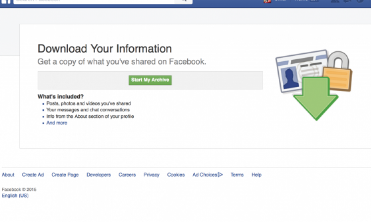 يمكن للمستخدم تنزيل معلوماته من صفحة Settings، وبعد ذلك عليه الضغط على Download a copy of your Facebook data أسفل إعدادات الحساب العامة، ومن ثم الضغط على البدء بأرشيفي، ليتم بعد ذلك Start My Archive للحصول على نسخة أرشيفية من معلومات حساب فيس بوك، والتي تحتوي على معلومات اليوميات والمنشورات التي شاركها المستخدم، بالإضافة إلى الرسائل والصور والمزيد.