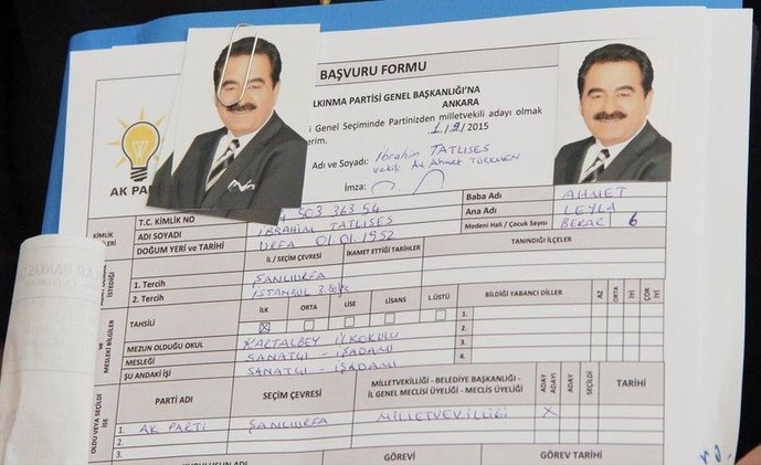 قدم المغني التركي الشهير ورجل الأعمال إبراهيم تاتليسيس ترشحه للانتخابات البرلمانية التركية المبكرة، في لائحة حزب العدالة والتنمية ( حزب اردوغان ) في ولاية شانلي أورفه، مسقط رأسه.