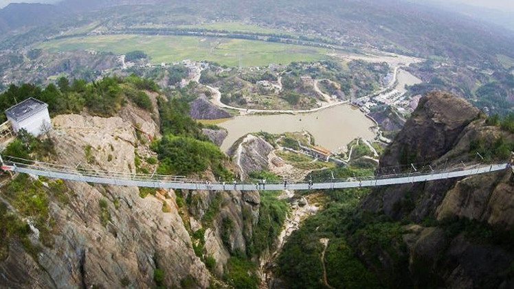 يبلغ طول هذا الجسر الذي اقيم في منتزه بمقاطعة هونان 300 م على ارتفاع 180 م واطلق عليه اسم "جسر الشجعان". فأرضية الجسر من زجاج سمكه 24 ملم.