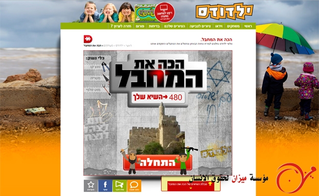 قامت مؤسسة "ميزان " لحقوق الانسان والتي تتخذ من مدينة الناصرة مقراً لها, بتوصيل رسالة عاجلة الى المستشار القضائي للحكومة, مطالبةً اياه بحذف لعبة حاسوب اسرائيلية تحرض على قتل العرب ومقاضاة القائمين عليها.