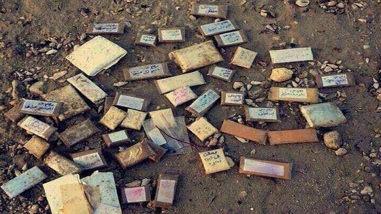 ونشر نشطاء يمنيون صورا كثيرة لطلاسم أو ما تسمى في بلاد الشام (الكْتيبِه) قذفها الإعصار تشابالا إلى الشاطئ في جزيرة سقطرى اليمنية وجمعها وكأنه يقول للناس : تعالوا وقارنوا أين أفعالكم لقد فضحكم الله .
