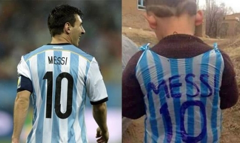 ويعشق الطفل الأفغاني مرتضى أحمدي، البالغ من العمر 5 أعوام، النجم الأرجنتيني، لكن الأوضاع المادية لا تسمح له بشراء قميص لاعب برشلونة، ما دفع شقيقه الأكبر إلى استخدام كيس بلاستيكي من أجل صناعة قميص بلوني الأرجنتين، وكتب على الظهر اسم ميسي.