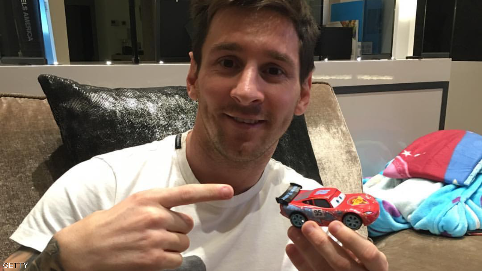 في ظهور بطريقة هزلية غير معهودة, ابتعد فيها عن الجدية,نشر اللاعب الارجنتيني ليونيل ميسي صورة له عل صفحته في انستاغرام وهو يحمل سيارة فيراري صغيرة ساخراً من الشائعات حول شرائه اغلى سيارة في العالم.