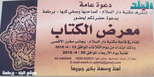 يسر مكتبة دار السلام في برطعة دعوتكم لحضور معرض الكتاب المقام في قاعة مكتبة دار السلام الكائنة بجانب مخبز الاقصى