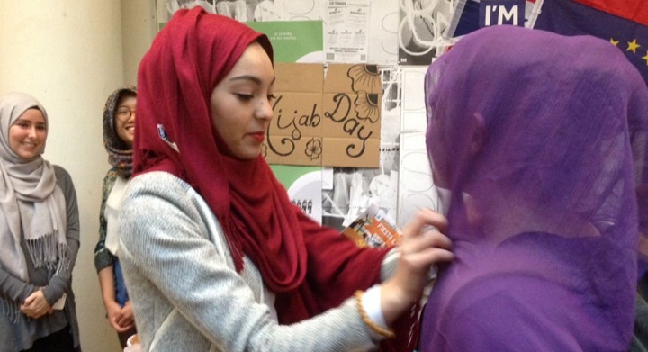 وأطلقت "يوم الحجاب" عبر "فيسبوك"، مجموعة طلاب في معهد العلوم السياسية في باريس، ووزعت عشرات الطالبات صباح اليوم، منشورات في بهو المعهد أمام طاولة مغطاة بحجابات ومناديل.