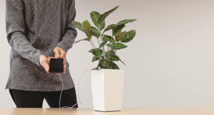 قامت شركة اسبانية بتطوير جهاز لشحن الاجهزة الالكترونية والهواتف النقالة عبر توصيله بالنبات,.