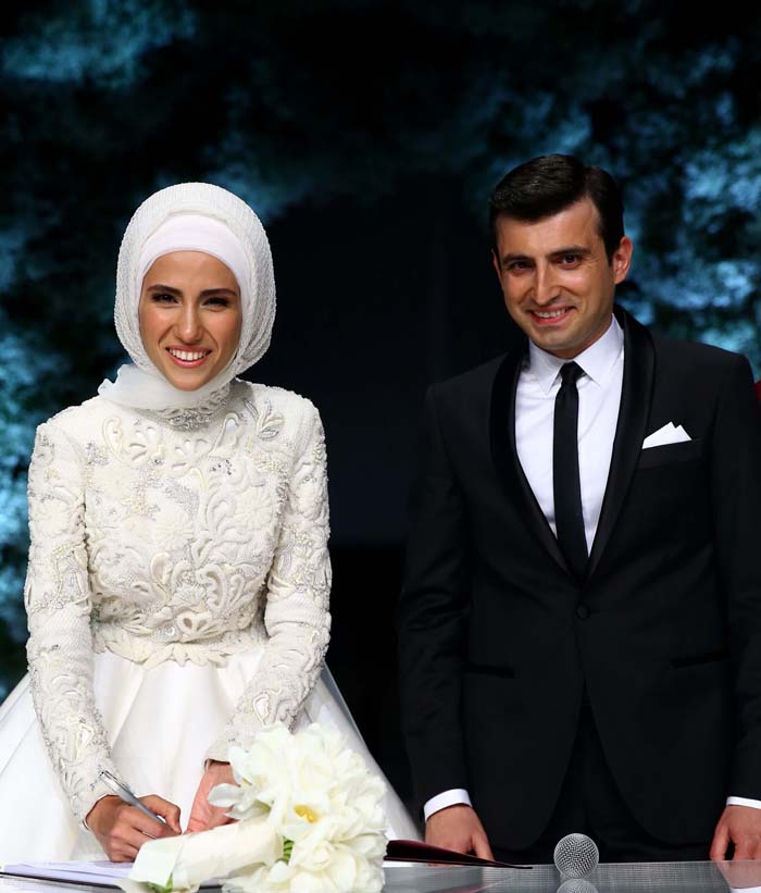 وذكرت وكالة الأناضول التركية للأنباء، أن مراسم عقد القران، جرت في مركز "يحيى كمال بياتلي" في إسطنبول، بحضور مسؤولين أتراك، وآخرين من بعض الدول، إلى جانب عائلتي العروسين، وسط إجراءات أمنية مشددة.
