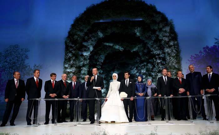 وشهد على عقد القران، كل من الرئيس التركي السابق عبد الله غل، ورئيس الوزراء أحمد داود أوغلو، ورئيس البرلمان إسماعيل قهرمان، ورئيس هئية الأركان خلوصي أكار، إلى جانب عضو المجلس الرئاسي البوسني بكرعزت بيغوفيتش، ورئيسي وزراء باكستان نواز شريف، وألبانيا إيدي راما، ورئيس الحكومة اللبنانية الأسبق سعد الحريري.