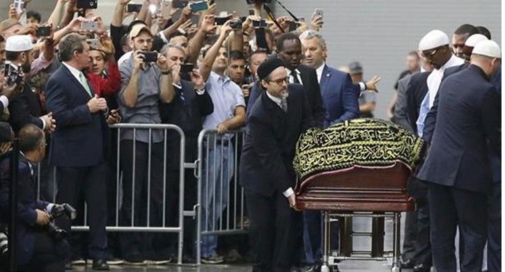 وفق الشعائر الاسلامية , اقيمت صلاة الجنازة على البطل العالمي السابق محمد علي ,ي مدينة لويفيل بولاية كنتاكي الامريكية, فيما سيوارى الثرى غداً الجمعة بمشاركة واسعة من قبل شخصيات عالمية ورؤساء دول.