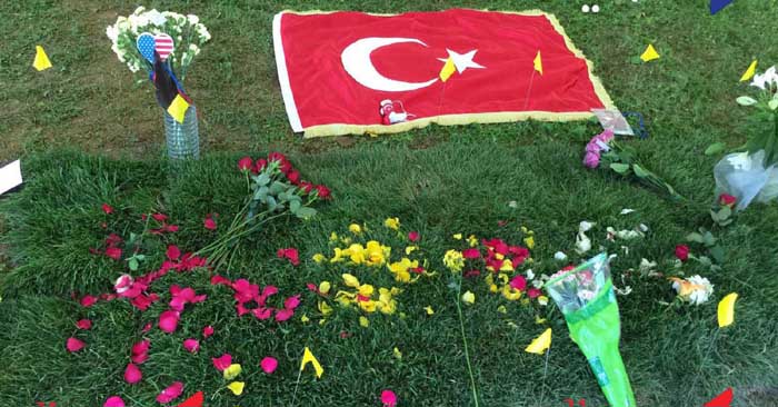 وبحسب الصور، فإن المشيعين الذين ودعوا محمد علي كلاي تركوا وراءهم علما لتركيا إلى جانب القبر المغطى بالورود، وإلى جانب العلم التركي يظهر علم مقاطعة "ويلز" في بريطانيا، في تعبير واضح على أن المشيعين الذين ودعوا كلاي كانوا من مختلف التوجهات والأديان والأعراق والأصول.